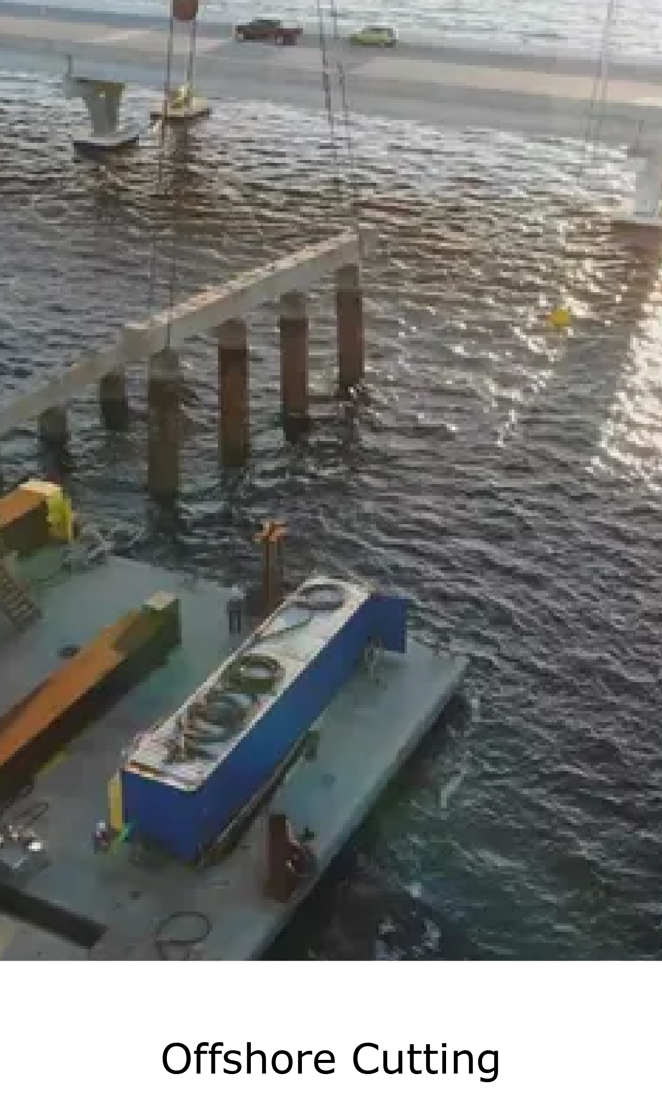 The machine is operated remotely, so workers stay safe on the platform during the entire cutting process.
